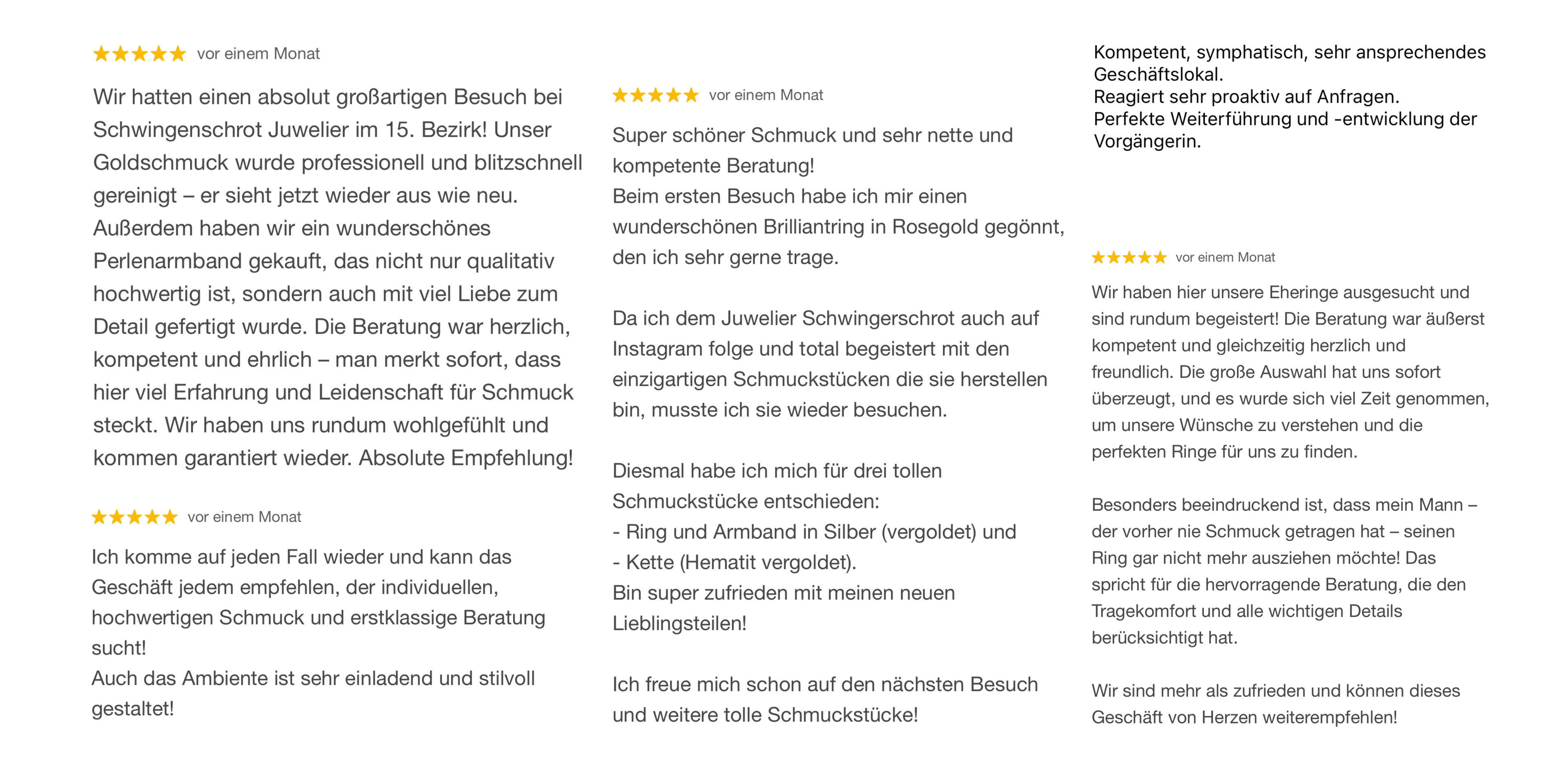 Direkt aus den Google-Bewertungen – unverfälscht und echt.